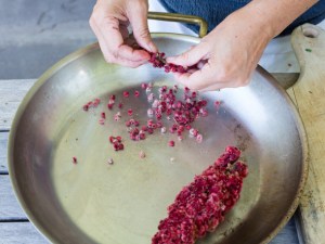 Regarding the use of weeds as a culinary product, Matsuoka Wong draws out the fact that most of us are immigrants to this country: the people and the weeds. She recognizes the disconnect many of us have with our cultural roots. We no longer remember what to do with these plants we call “weeds,” many of which were brought here because of their edible nature. Her Japanese relatives and friends recognized Japanese knotweed, which she was vigorously attempting to eradicate in her yard. Harvesting weeds provides great diversity and flavor. It is also very inexpensive to forage! One does not need major grants and infrastructure in order to find weeds in one’s backyard or neighborhood. There is something empowering about the ability to forage, to find food growing up through the cracks in the sidewalk, or spreading wild on a piece of unused land. (Matsuoka Wong cautions not to eat weeds whose history you are unfamiliar with—you don’t want to eat something that has been sprayed with pesticides, and of course it is not very neighborly to forage on someone else’s property without permission.)